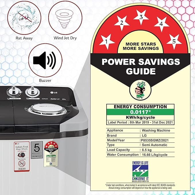 LG 7 Kg 5 Star Wind Jet Dry Semi-Automatic Top Loading Washing Machine (P7020NGAZ, Dark Gray, Rat Away Feature)