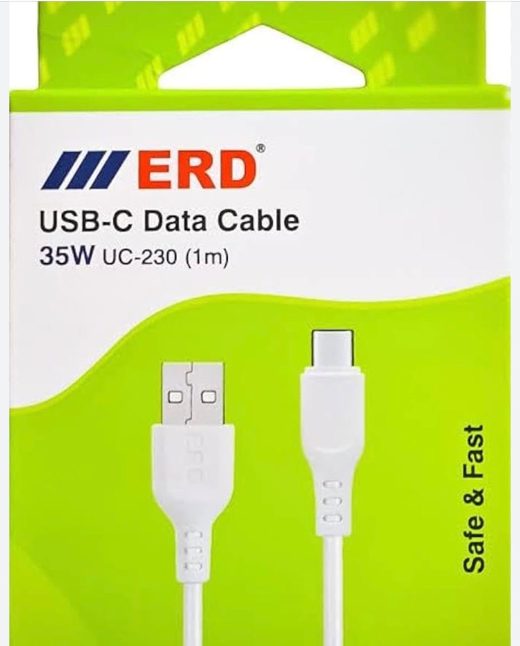 ERD UC-230 USB Type-C Metal Data Cable, 35W Fast Charging, High-Speed Data Transfer, Durable, High Strength with 5mm OD cable, 1m Long, Compatible with Android Devices, Tablets, White