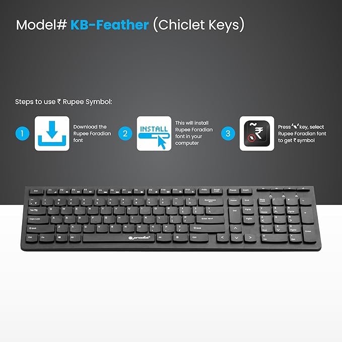 ProDot Feather Chicklet Keyboard I Plug & Play I 1.5m USB Wire I 10M Keystrokes I 108 Keys I Rupees Key I Ergonomic, Spill Resistant Design | 1 Year Warranty | Works with Windows, iOS, Linux